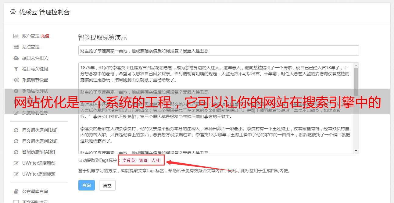 优采云 发布时间: 2021-05-10 21:27网站优化是一个系统的工程,它可以让你的网站在搜索引擎中的排名靠前