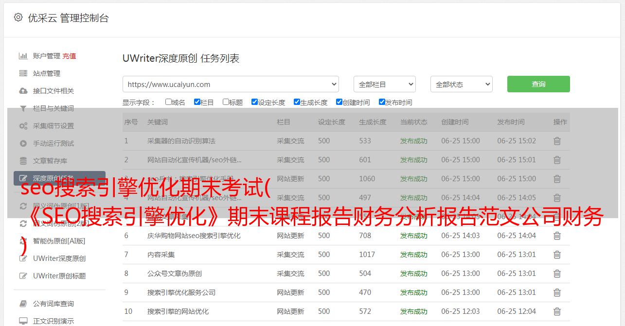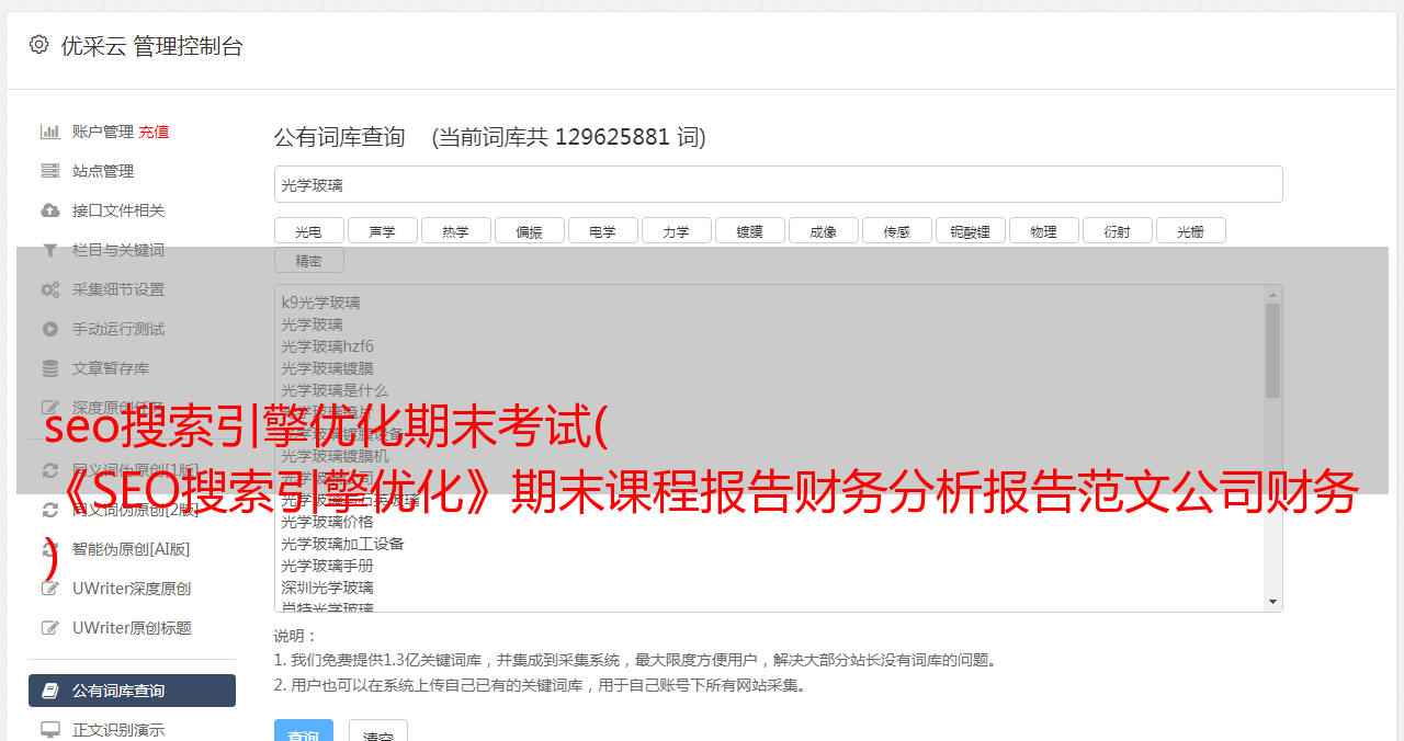 优采云 发布时间: 2022-03-19 03:07seo搜索引擎优化期末考试(