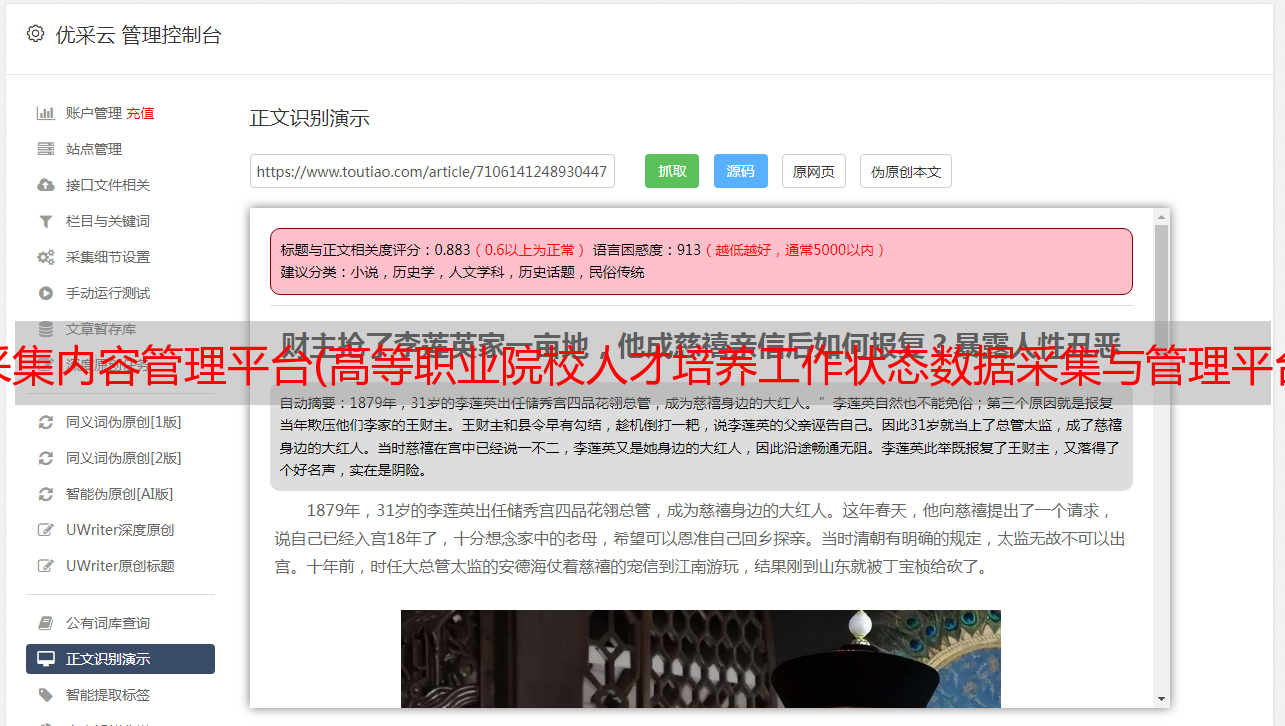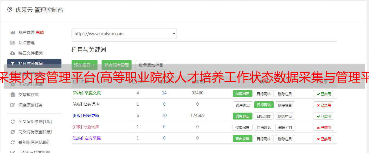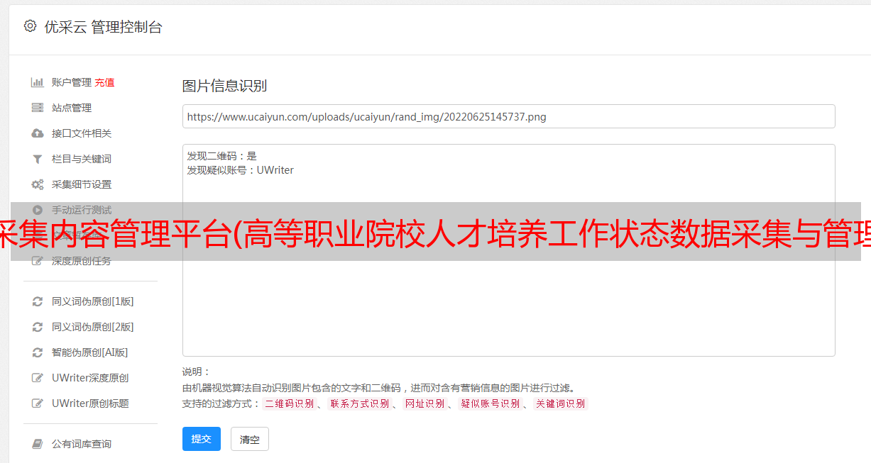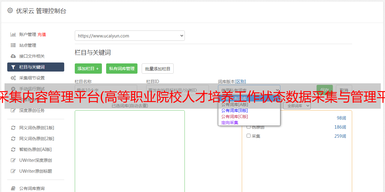 优采云 发布时间: 2022-03-19 07:17采集内容管理平台(高等职业院校人才培养工作状态数据采集与管理平台V2.16a001操作指南)