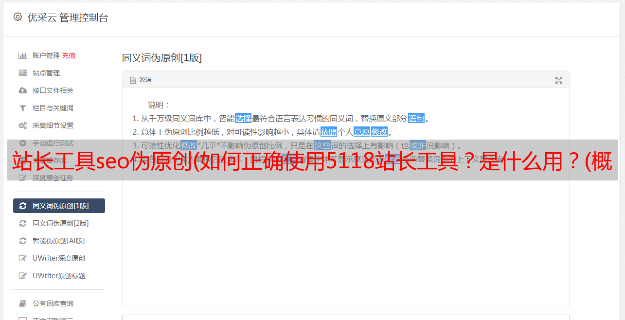 优采云 发布时间: 2022-03-19 09:07站长工具seo伪原创(如何正确使用5118站长工具?是什么用?(概述))