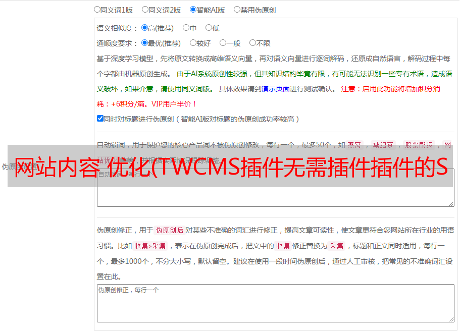 网站内容 优化(TWCMS插件无需插件插件的SEO关键词布局插件 )