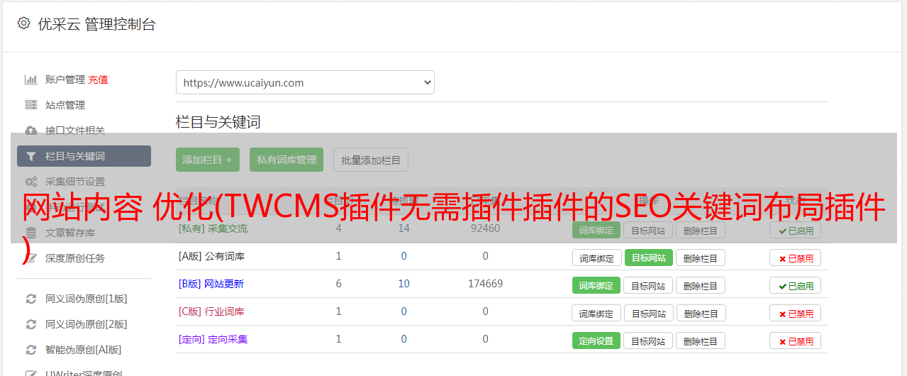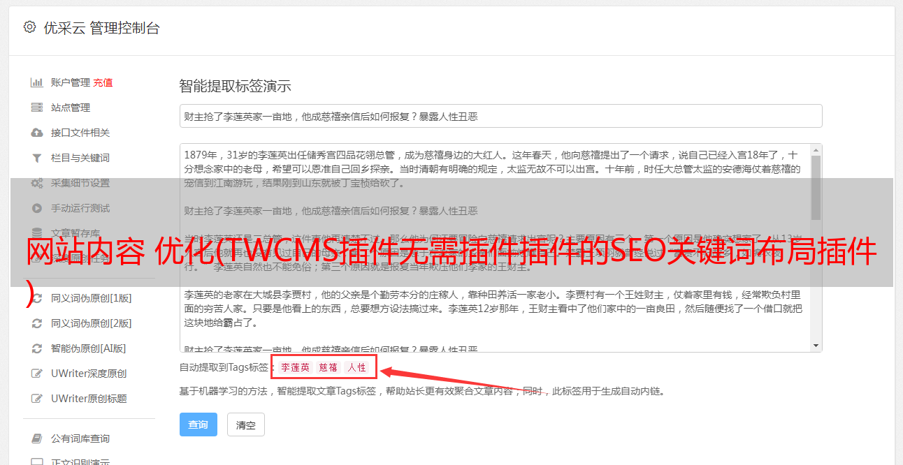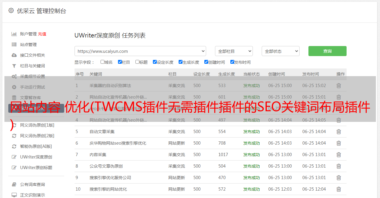 优采云 发布时间: 2022-03-19 10:19网站内容 优化(TWCMS插件无需插件插件的SEO关键词布局插件