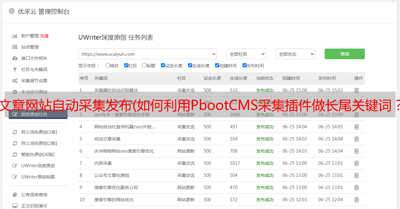 优采云 发布时间: 2022-03-19 11:05文章网站自动采集发布(如何利用PbootCMS采集插件做长尾关键词?(组图)