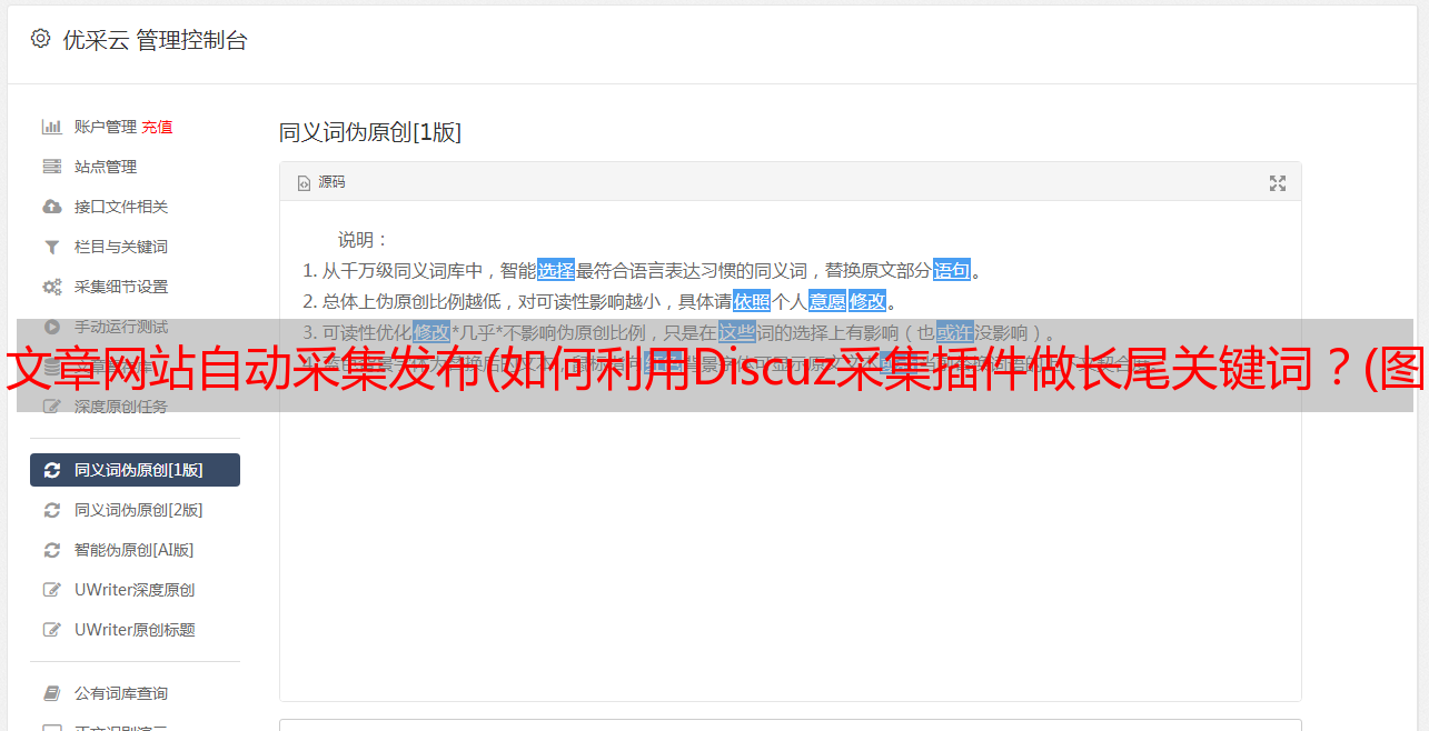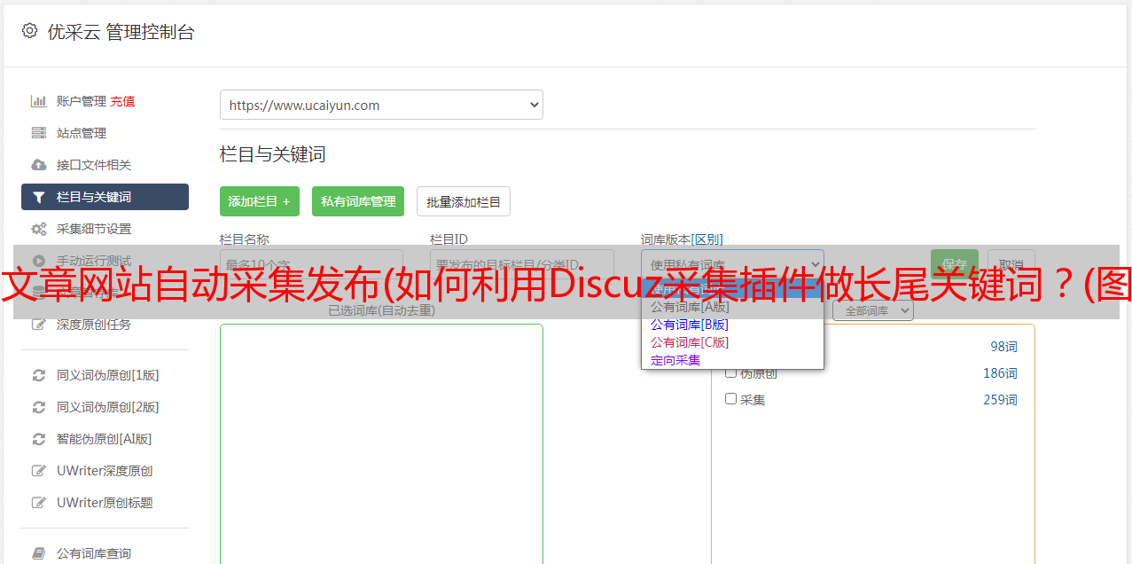 优采云 发布时间: 2022-03-19 11:08文章网站自动采集发布(如何利用Discuz采集插件做长尾关键词?(图文详解)