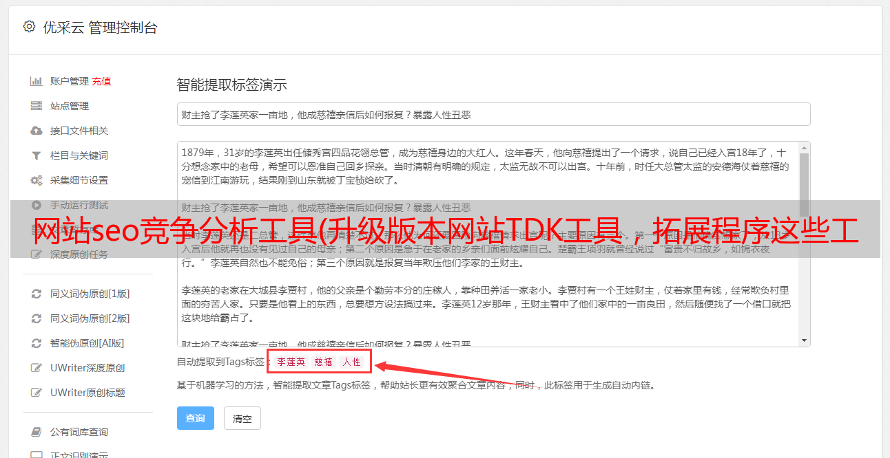 优采云 发布时间: 2022-03-19 11:12网站seo竞争分析工具(升级版本网站TDK工具,拓展程序这些工具都可以免费领取)