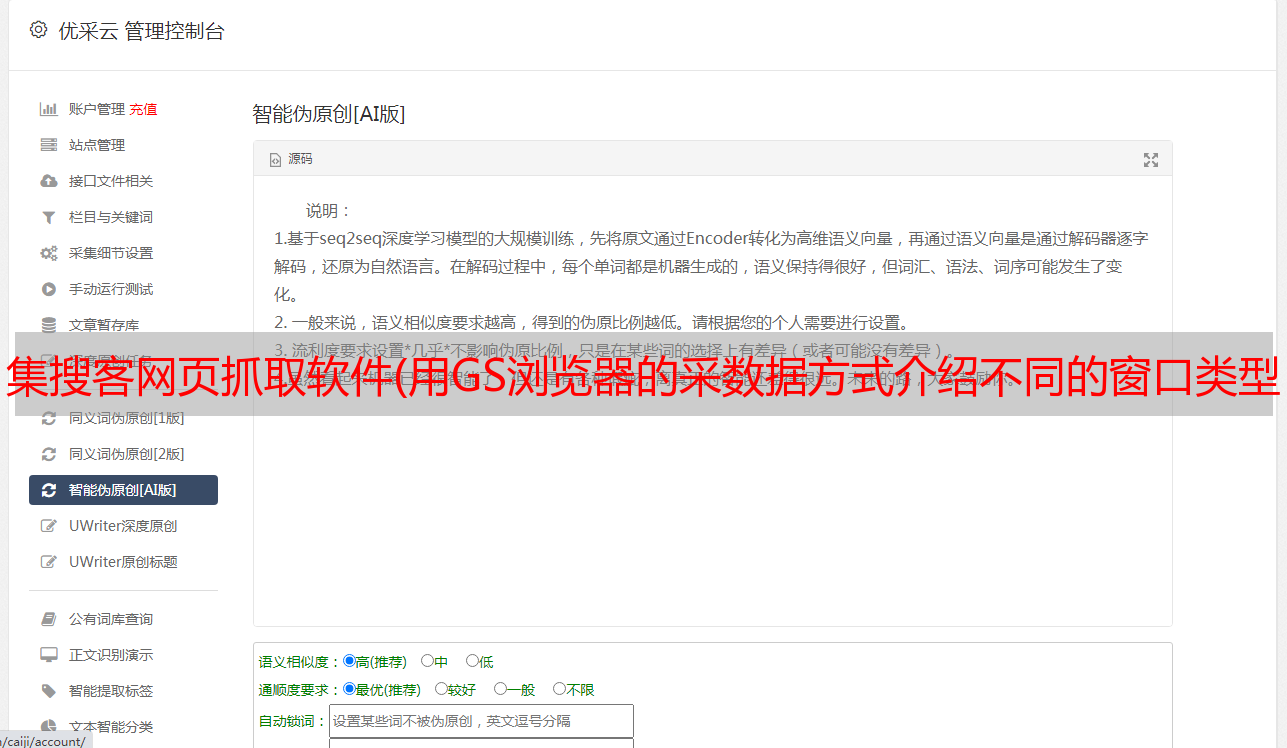 优采云 发布时间: 2022-03-19 12:17集搜客网页抓取软件(用GS浏览器的采数据方式介绍不同的窗口类型