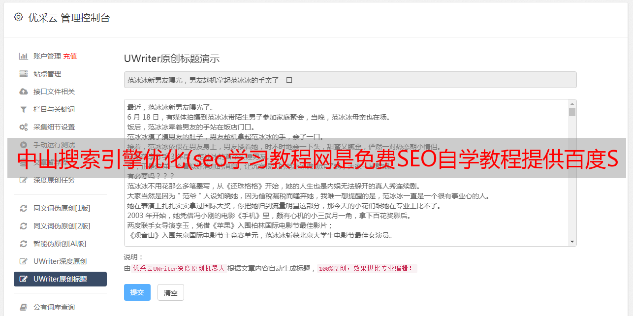 优采云 发布时间: 2022-03-19 13:19中山搜索引擎优化(seo学习教程网是免费SEO自学教程提供百度SEO优化)