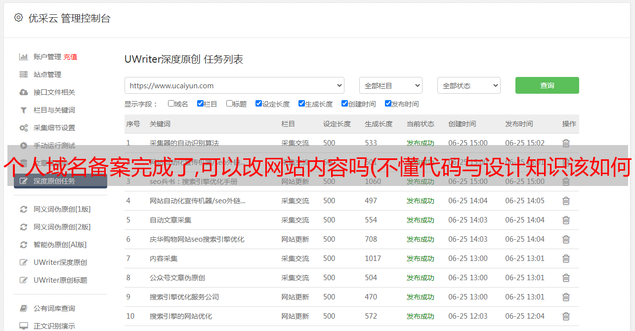 优采云 发布时间: 2022-03-19 20:23个人域名备案完成了,可以改网站内容吗(不懂代码与设计知识该如何创建自己的网站?