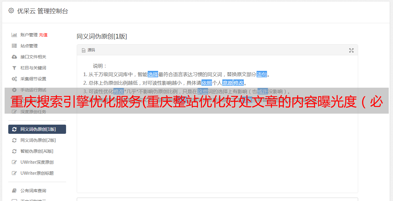 优采云 发布时间: 2022-03-20 07:01重庆搜索引擎优化服务(重庆整站优化好处文章的内容曝光度(必要性))