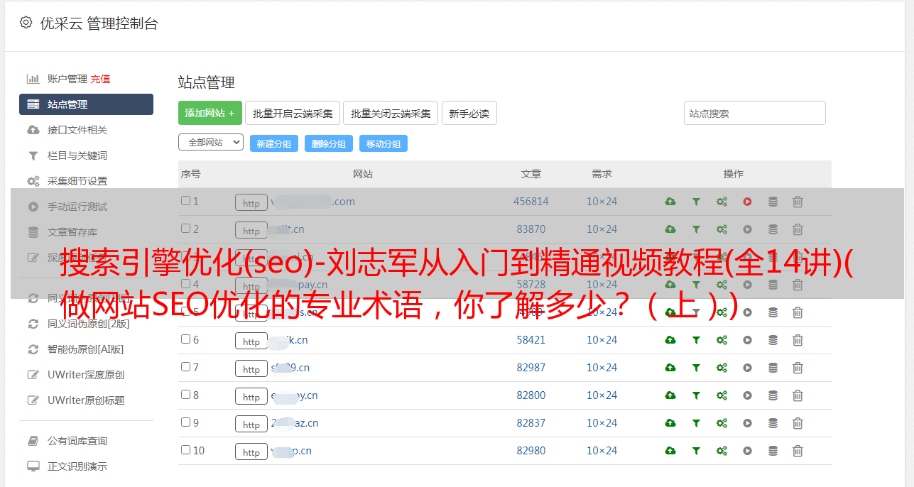 优采云 发布时间: 2022-03-20 09:22搜索引擎优化(seo)-刘志军从入门到精通视频教程(全14讲)(