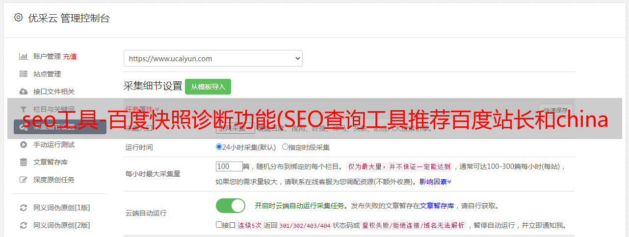 优采云 发布时间: 2022-03-20 12:14seo工具-百度快照诊断功能(SEO查询工具推荐百度站长和china工具优化的简称