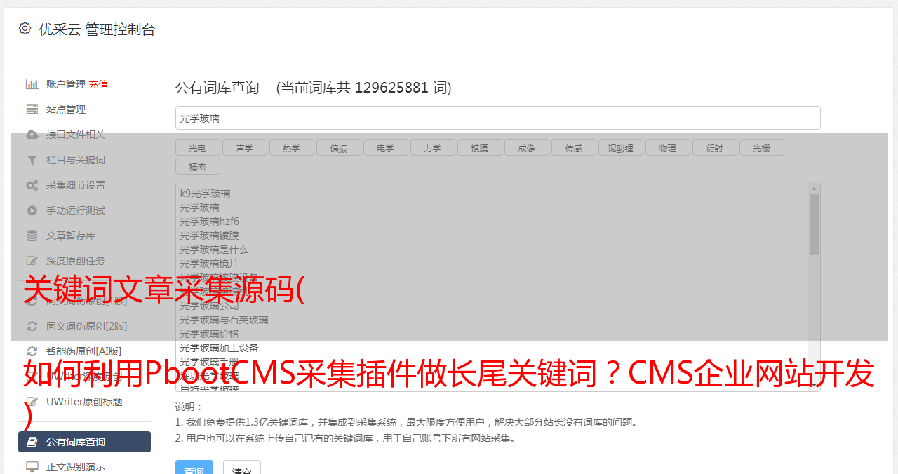 优采云 发布时间: 2022-03-20 18:11如何利用PbootCMS采集插件做长尾关键词?CMS企业网站开发