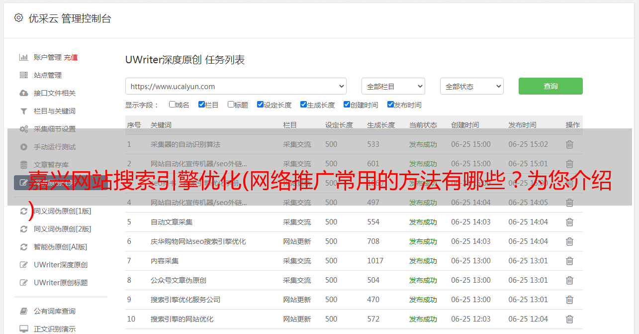 优采云 发布时间: 2022-03-20 18:12嘉兴网站搜索引擎优化(网络推广常用的方法有哪些?为您介绍