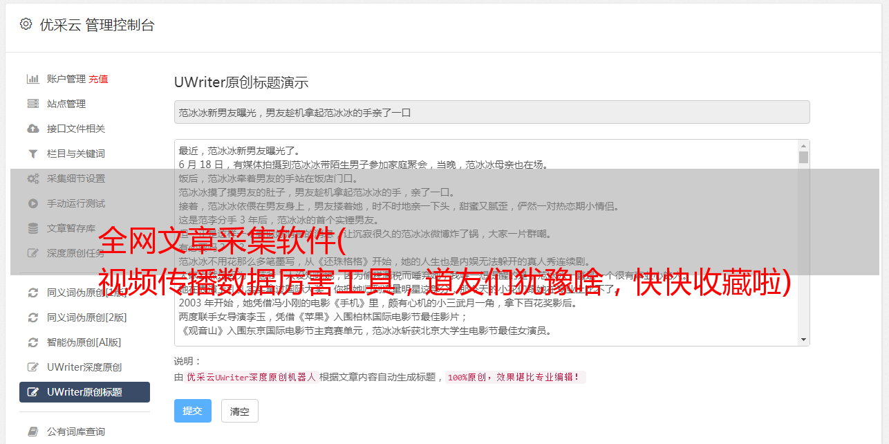 全网文章采集软件( 视频传播数据厉害工具,道友们犹豫啥,快快收藏啦)