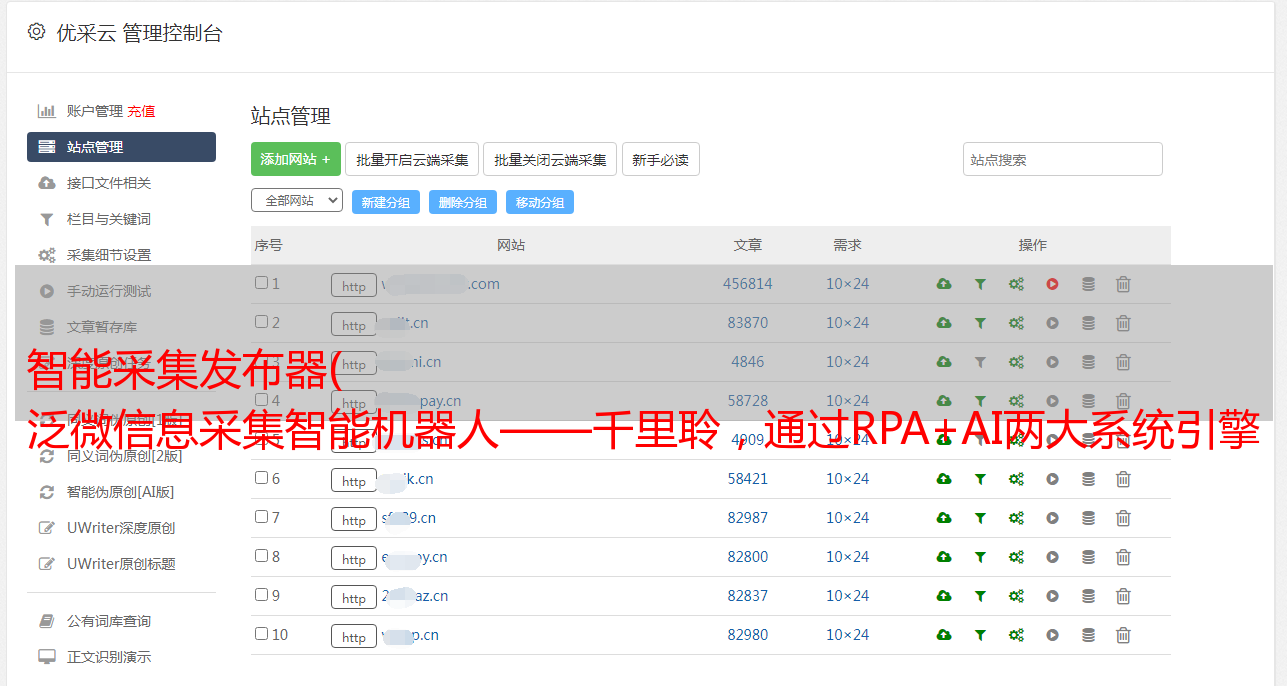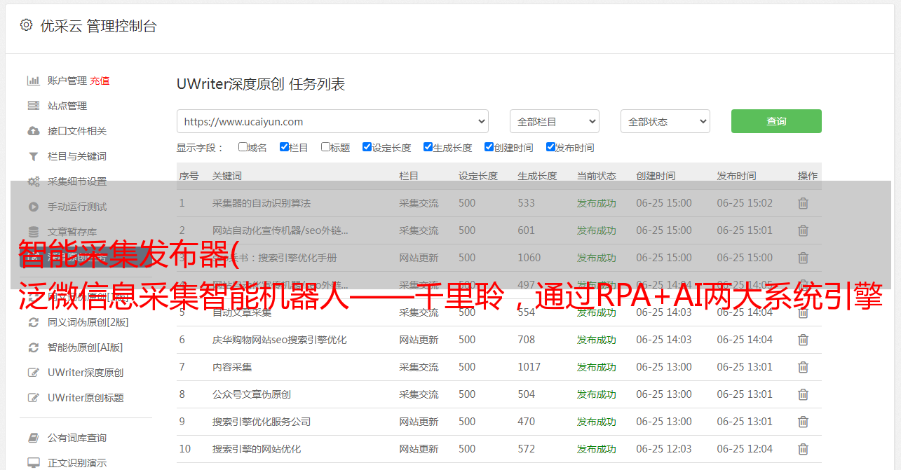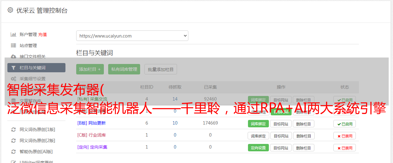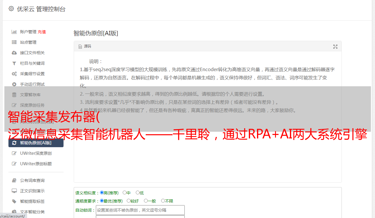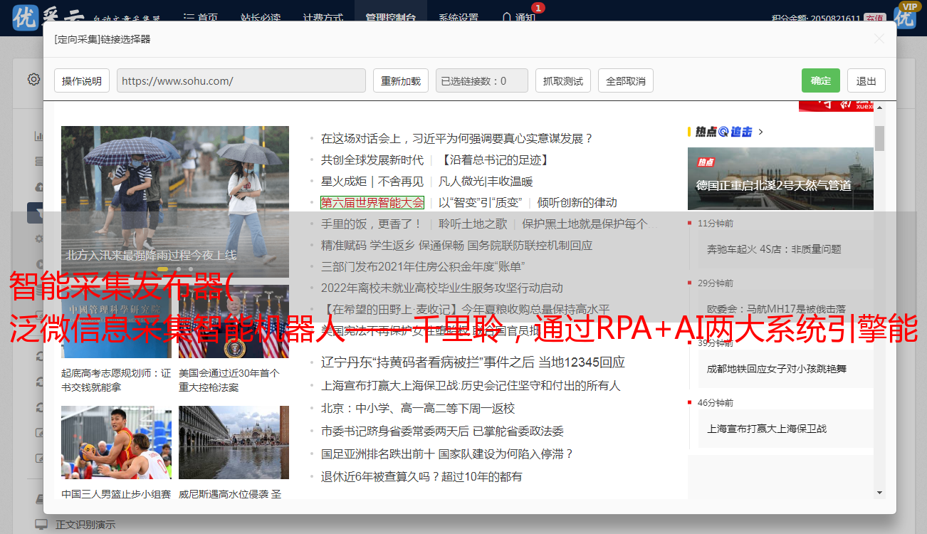 智能采集发布器( 泛微信息采集智能机器人——千里聆,通过RPA+AI两大系统引擎能力 )