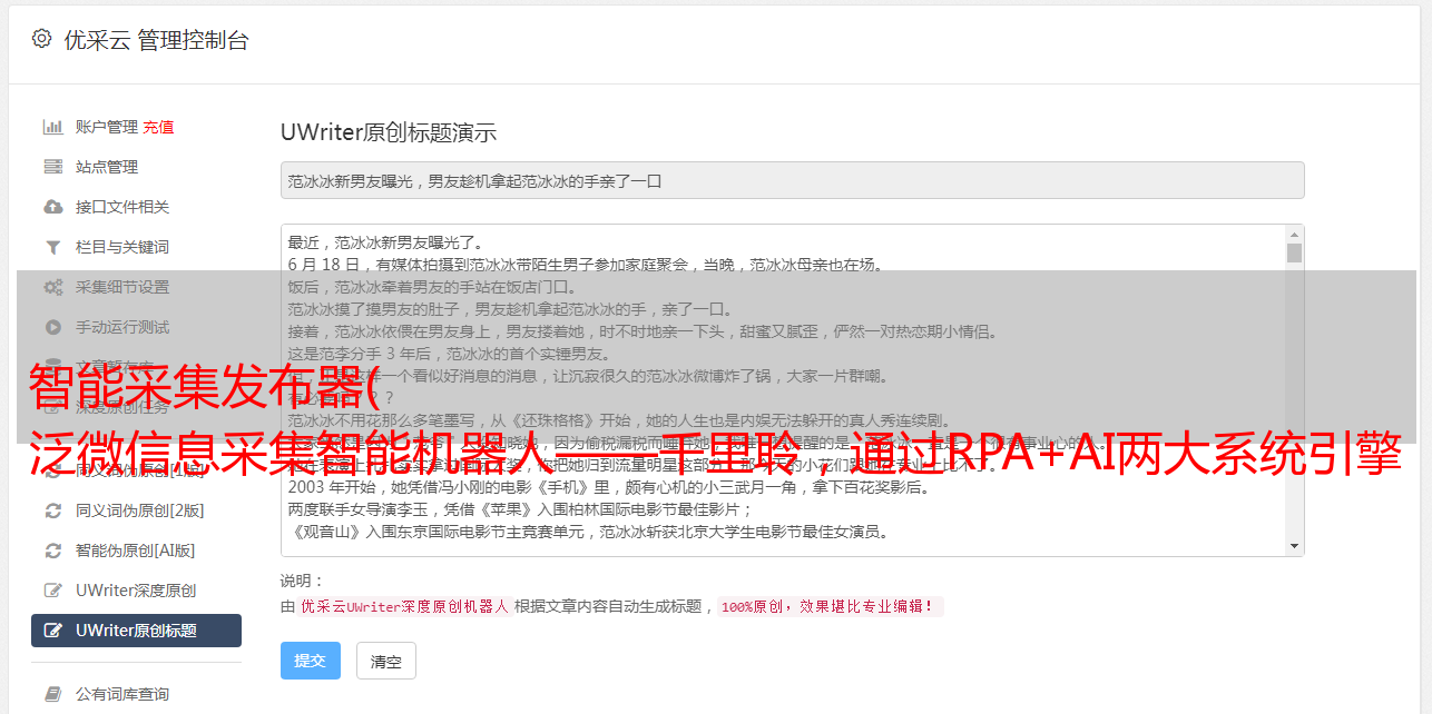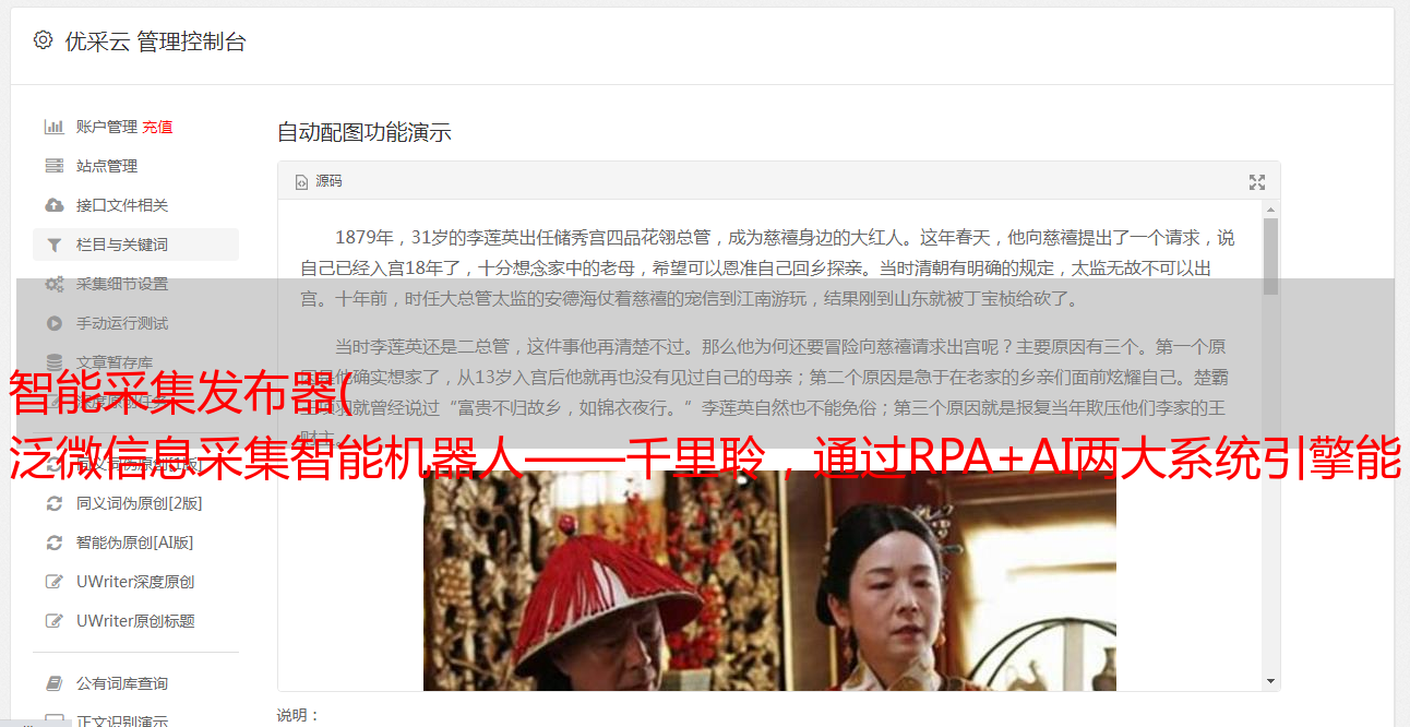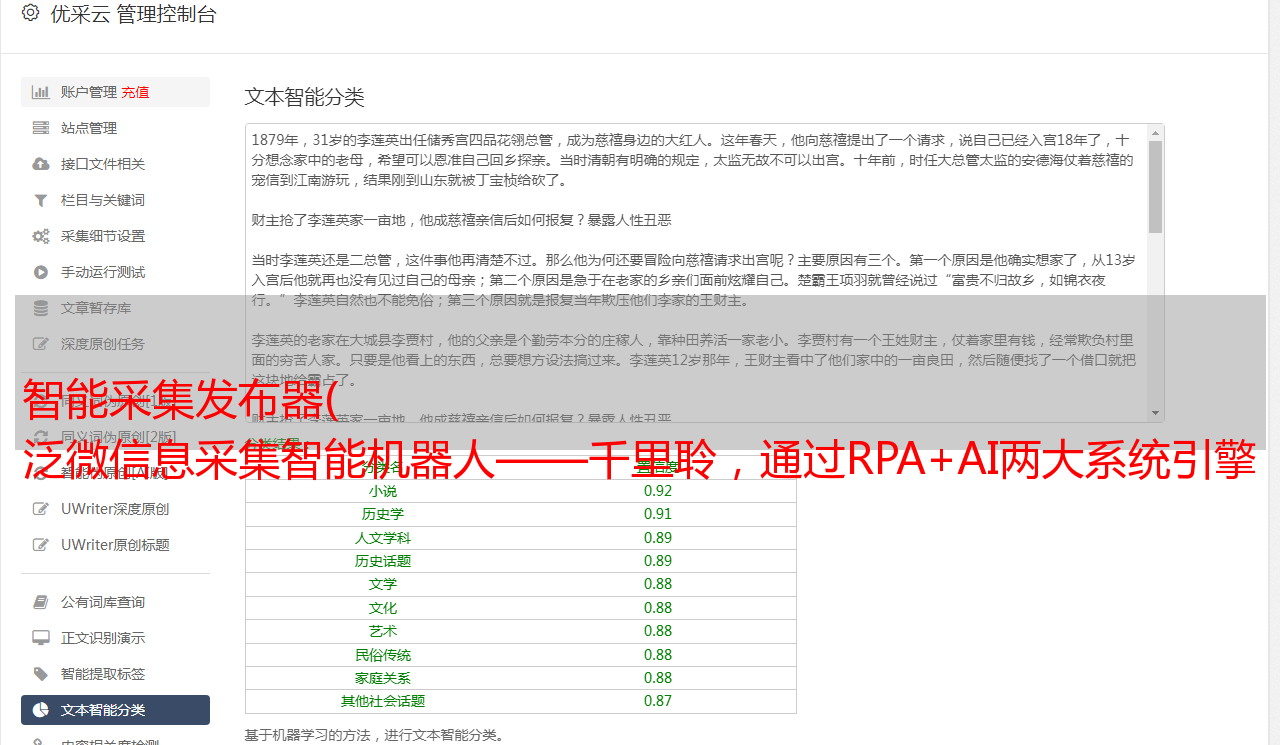 智能采集发布器( 泛微信息采集智能机器人——千里聆,通过RPA+AI两大系统引擎能力 )
