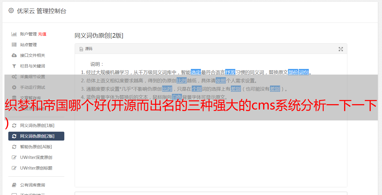 优采云 发布时间: 2022-03-20 20:19织梦和帝国哪个好(开源而出名的三种强大的cms系统分析一下一下