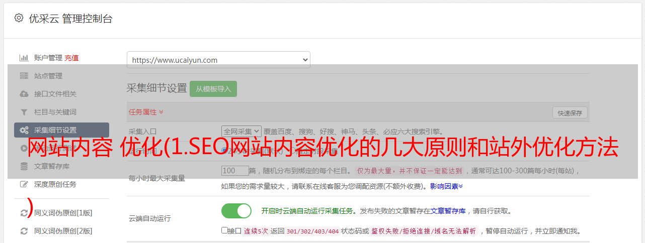 优采云 发布时间: 2022-03-20 21:23网站内容 优化(1.SEO网站内容优化的几大原则和站外优化方法
