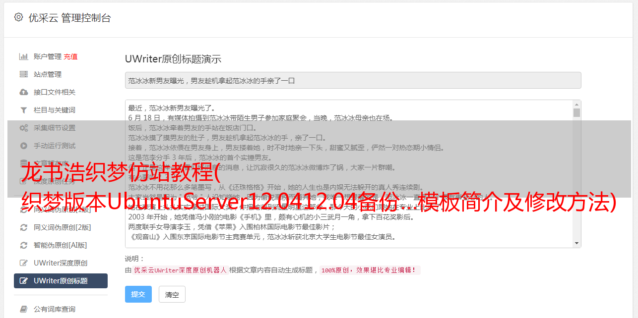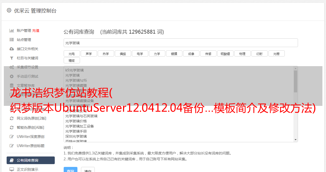优采云 发布时间: 2022-03-20 22:09龙书浩织梦仿站教程(