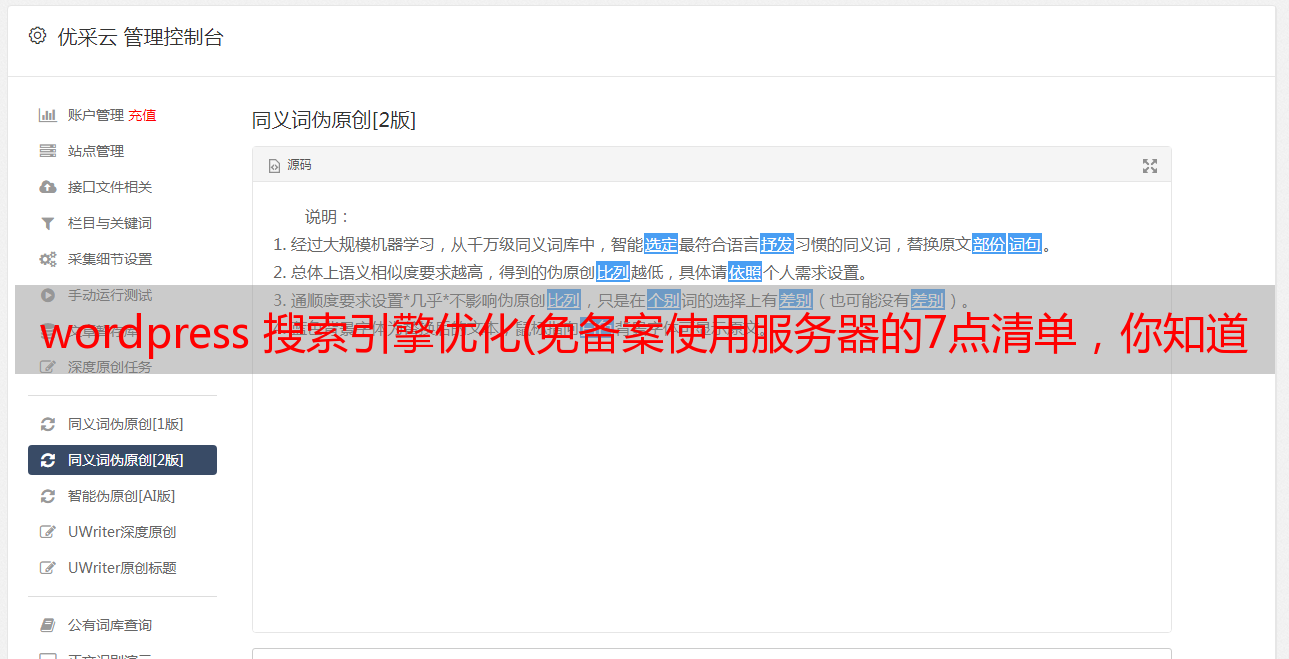 优采云 发布时间: 2022-03-21 02:23wordpress 搜索引擎优化(免备案使用服务器的7点清单,你知道吗?)