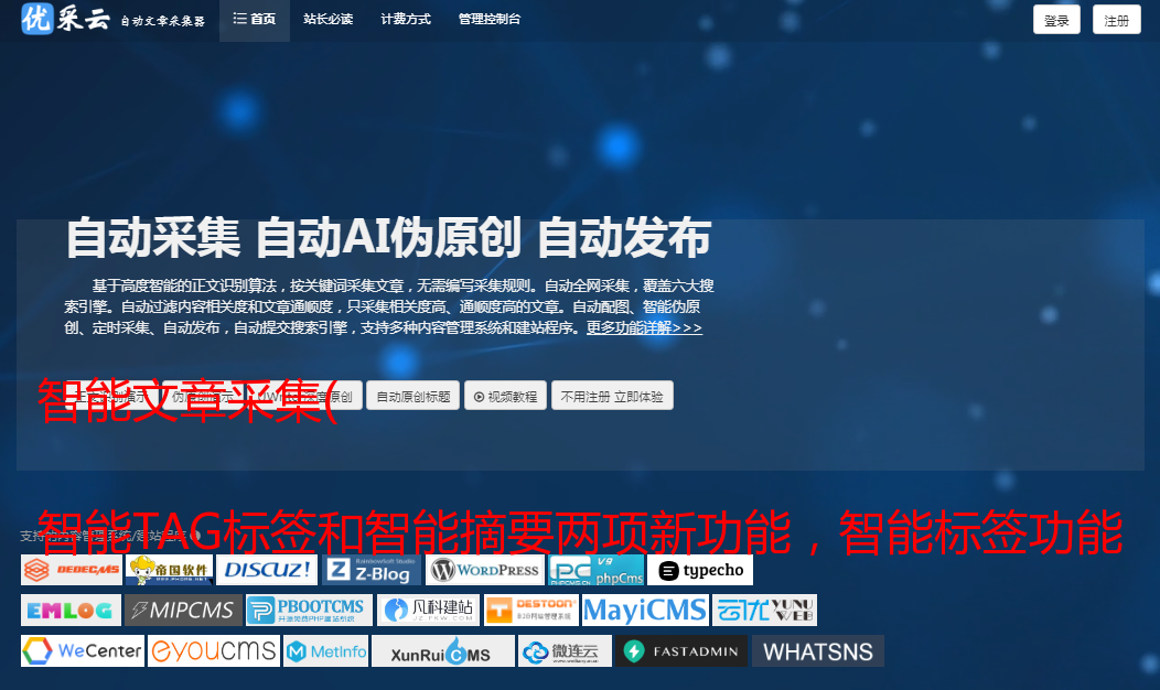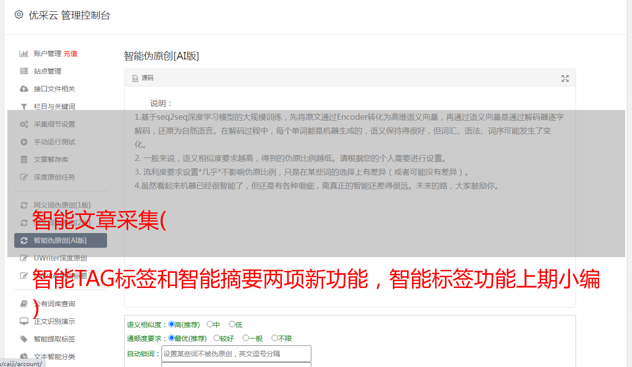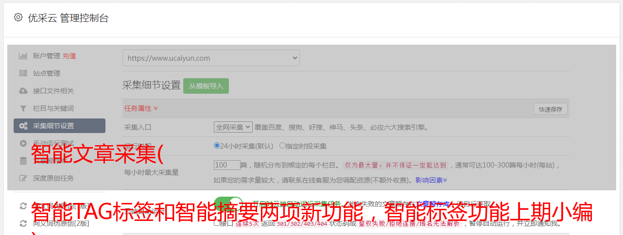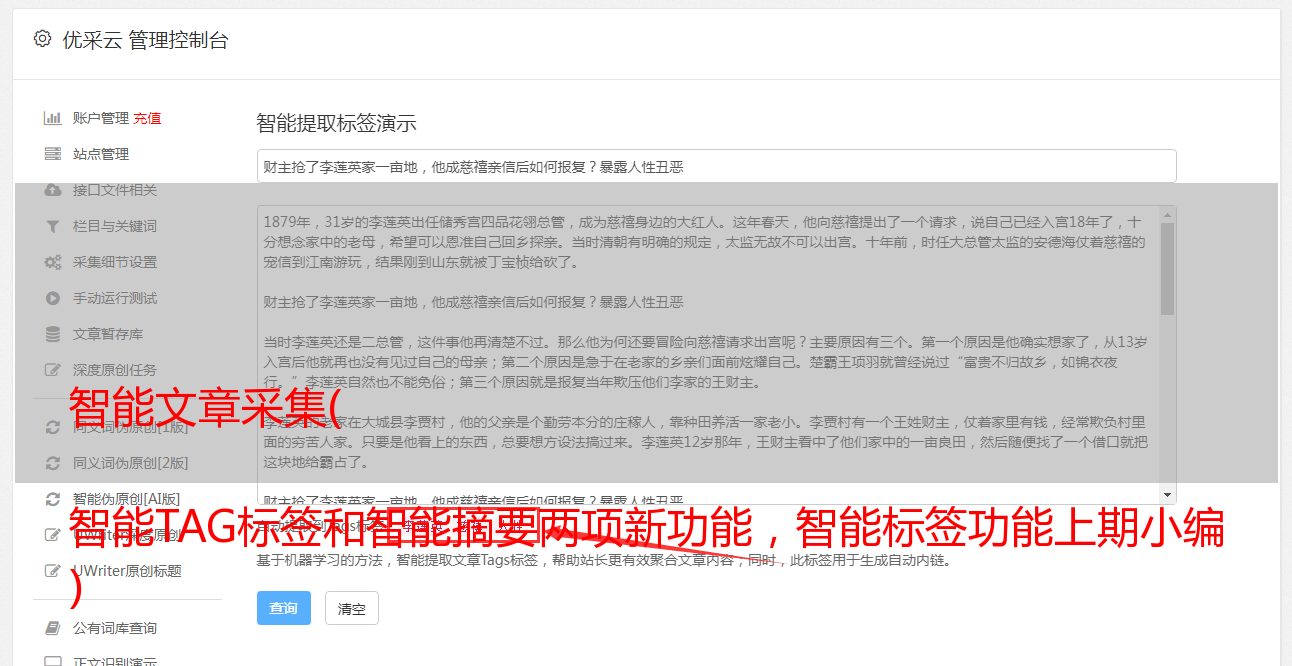 智能文章采集( 智能TAG标签和智能摘要两项新功能,智能标签功能上期小编 )