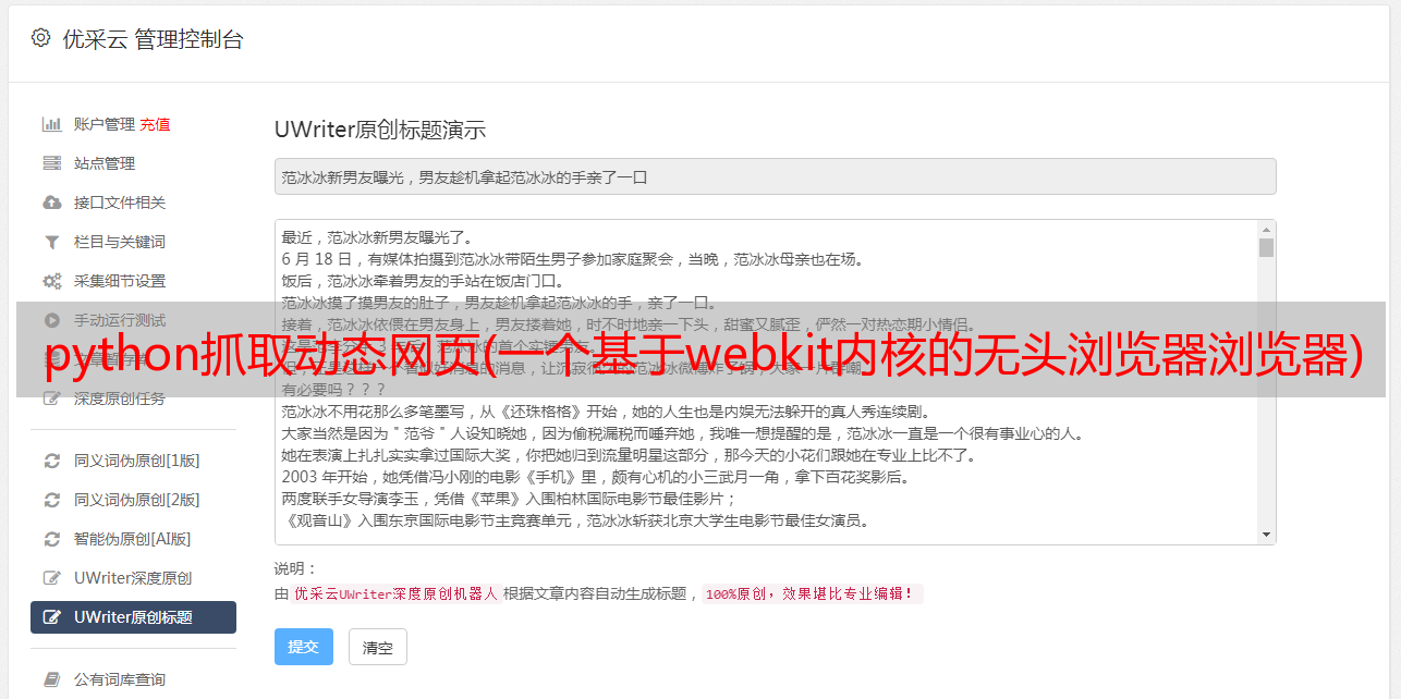 优采云 发布时间: 2022-03-21 05:15python抓取动态网页(一个基于webkit内核的无头浏览器浏览器)