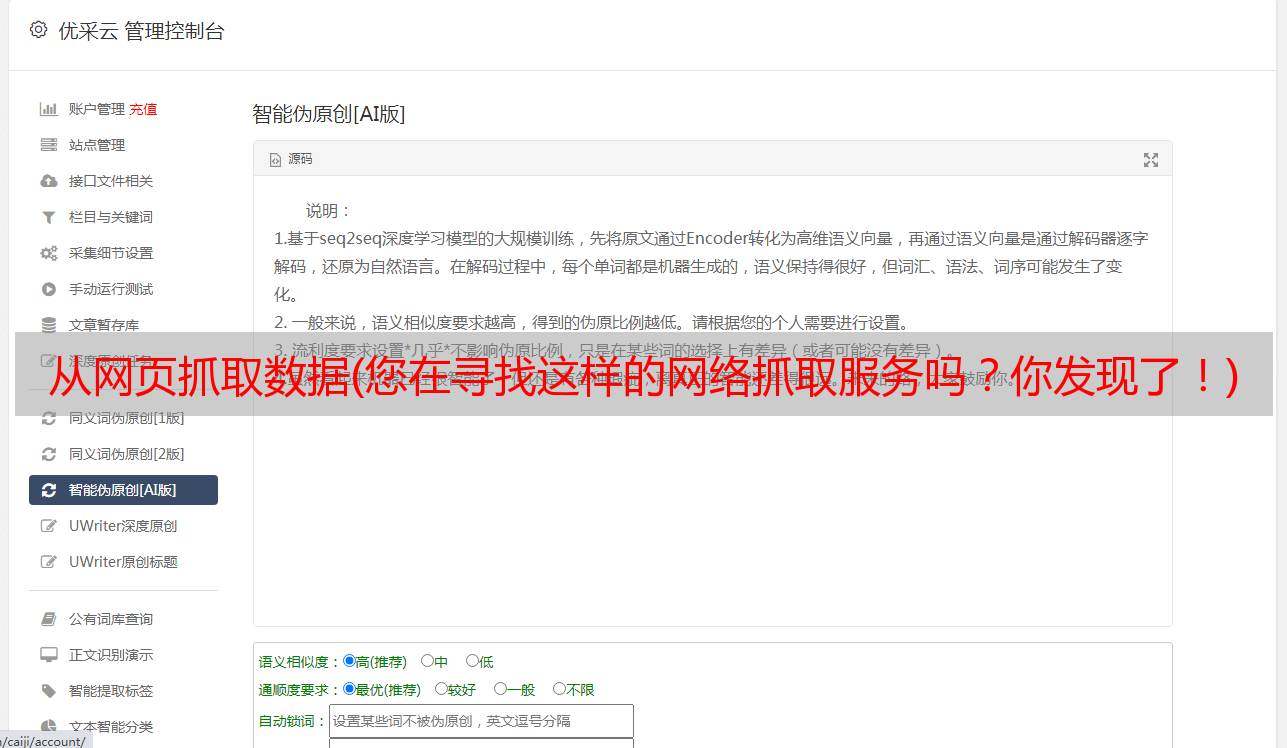 这是我们为网络抓取服务的最终用户提供的在线面板/仪表板