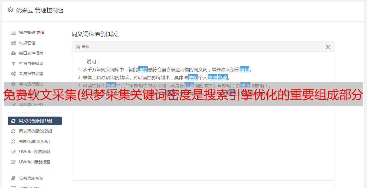 免费软文采集(织梦采集关键词密度是搜索引擎优化的重要组成部分。企业 )