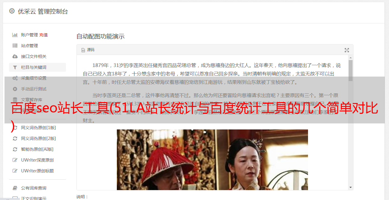 优采云 发布时间: 2022-03-21 15:05百度seo站长工具(51LA站长统计与百度统计工具的几个简单对比