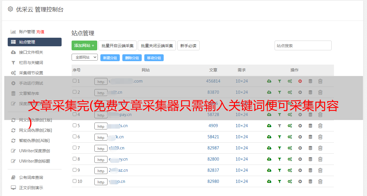 免费文章采集器基于自然语言理解、深度学习等技术。免费文章采集器目前全网主流cms/站群/蜘蛛池/免登录批量自动发布,无需写规则,免费文章采集器 无需上传插件。免费文章采集器一键配置采集发布几十个不同站点cms站群。
