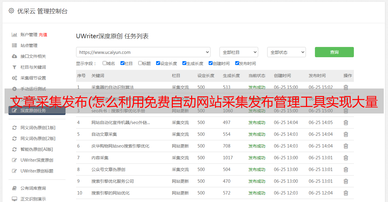 通过设置数百个行业关键词采集-创建数十个采集任务实现挂机采集发布-每天花几分钟检查采集@ >发布状态好!