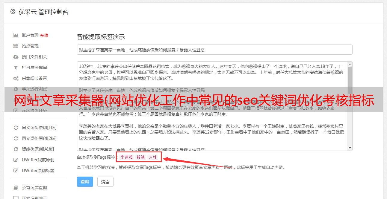 网站文章采集器(网站优化工作中常见的seo关键词优化考核指标有哪些)