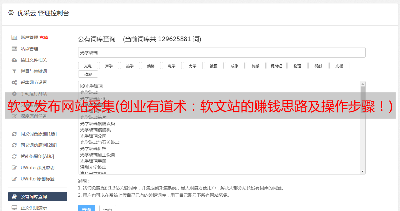 因为采集的基数很大,当网站的内容达到数量级时,搜索引擎自然会收录。而当搜索引擎收录,您可以轻松进入软文平台,等待客户实现交易。