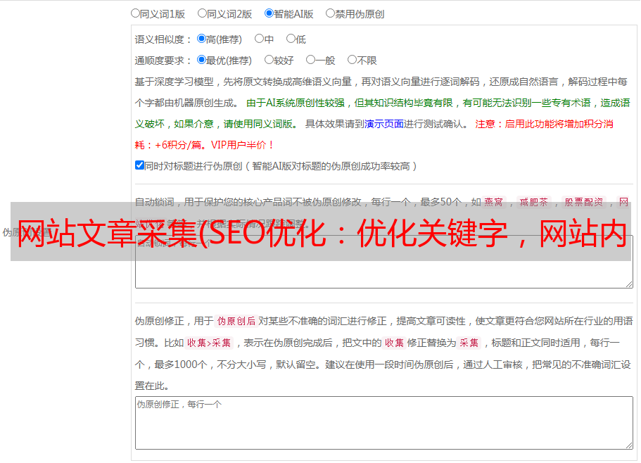 文章采集伪原创工具可以为我们的管理提供极大的便利网站,但也需要我们的站长合理使用。毕竟SEO的核心竞争力是持续优化,只要坚持数据分析和优化调整,总能达到理想的流量转化。