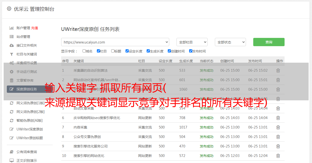 来源提取关键词显示竞争对手排名的所有关键字)