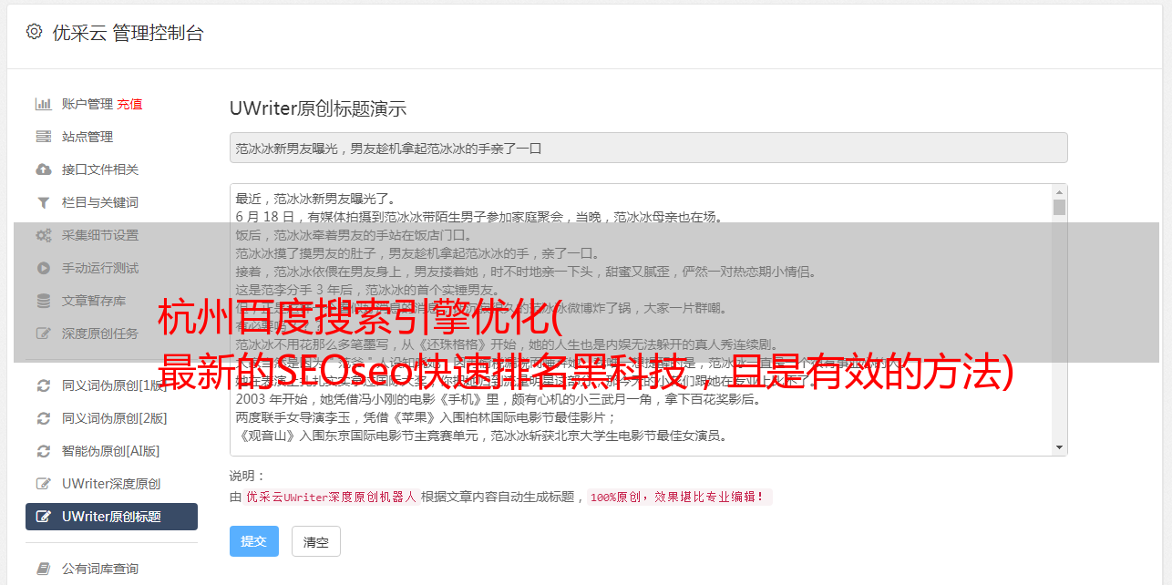 杭州百度快照seo(杭州百度快照专注于音乐云seo)