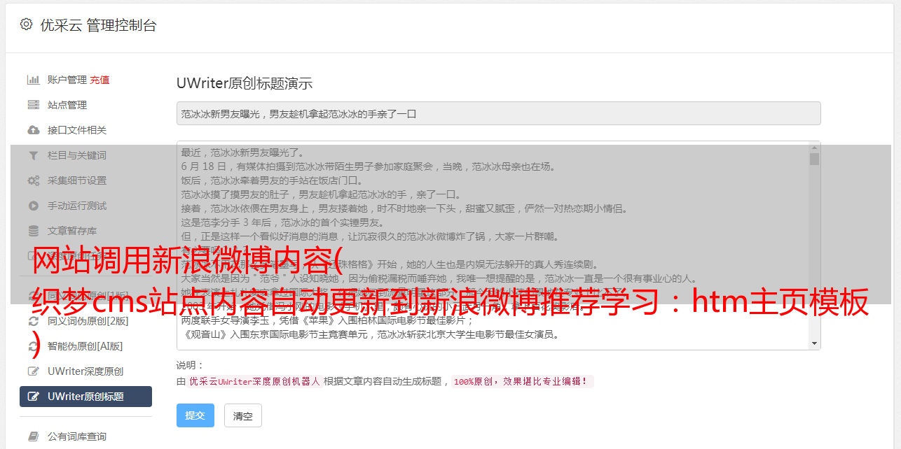 优采云 发布时间: 2022-03-21 20:07网站调用新浪微博内容(