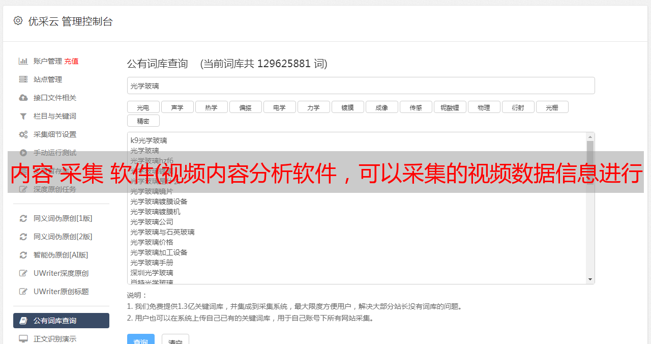 优采云 发布时间: 2022-03-21 20:47内容 采集 软件(视频内容分析软件,可以采集的视频数据信息进行数据化管理