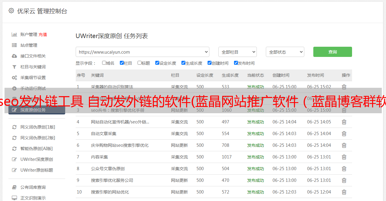 优采云 发布时间: 2022-03-21 23:04seo发外链工具 自动发外链的软件(蓝晶网站推广软件(蓝晶博客群软件)正式版V1.7.2绿色版
