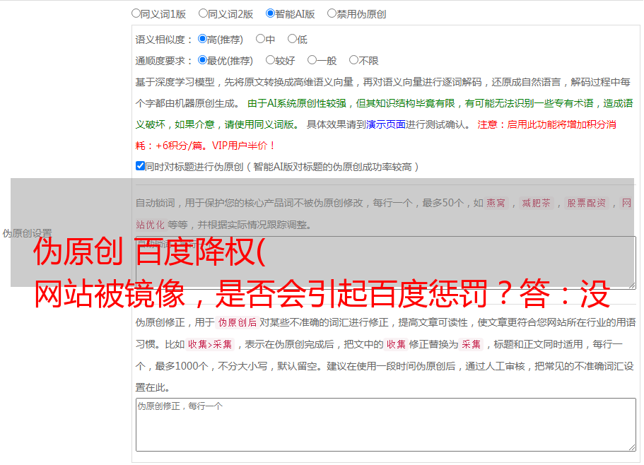 伪原创 百度降权( 网站被镜像,是否会引起百度惩罚?答:没影响)