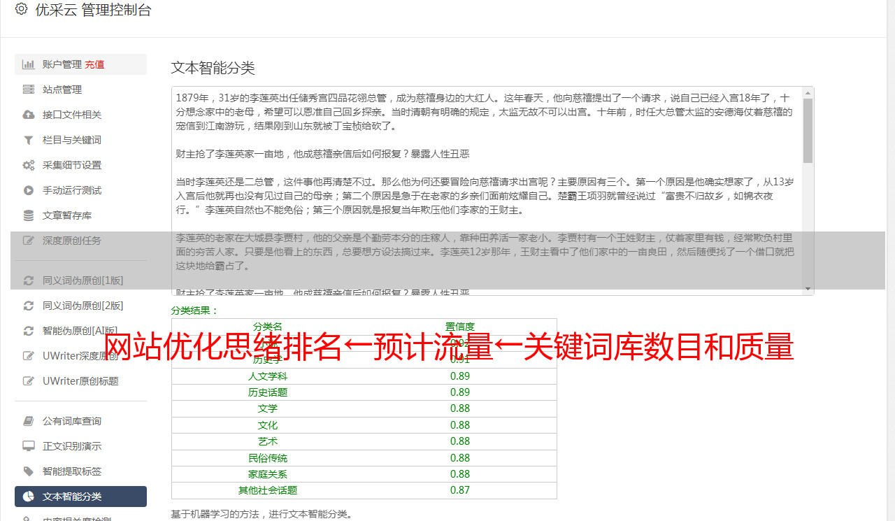 伪原创 文章是网站上最重要的部分,那么如何编写伪原创?第一段和最后一段都是自己写的,中心使用百度进行搜索。如果您想具有较高的原创程度,则可以在每个句子中加上一些单词或将其替换为同义词,这样文章 原创的程度必须至少为60%或更高(建议使用Feitian 原创来检测对象,如果检测不到60%,将会更受欢迎。什么是句子,然后专注于更改这几个句子,全部根据自己的理解意思写),整篇文章文章字数应在400-800之间,不要太少,不要太多,太少缺乏内涵,太多会感到冗长,有多少人会冷静下来阅读数千个单词文章?必须注意关键词的密度控制在3%-8%之间。