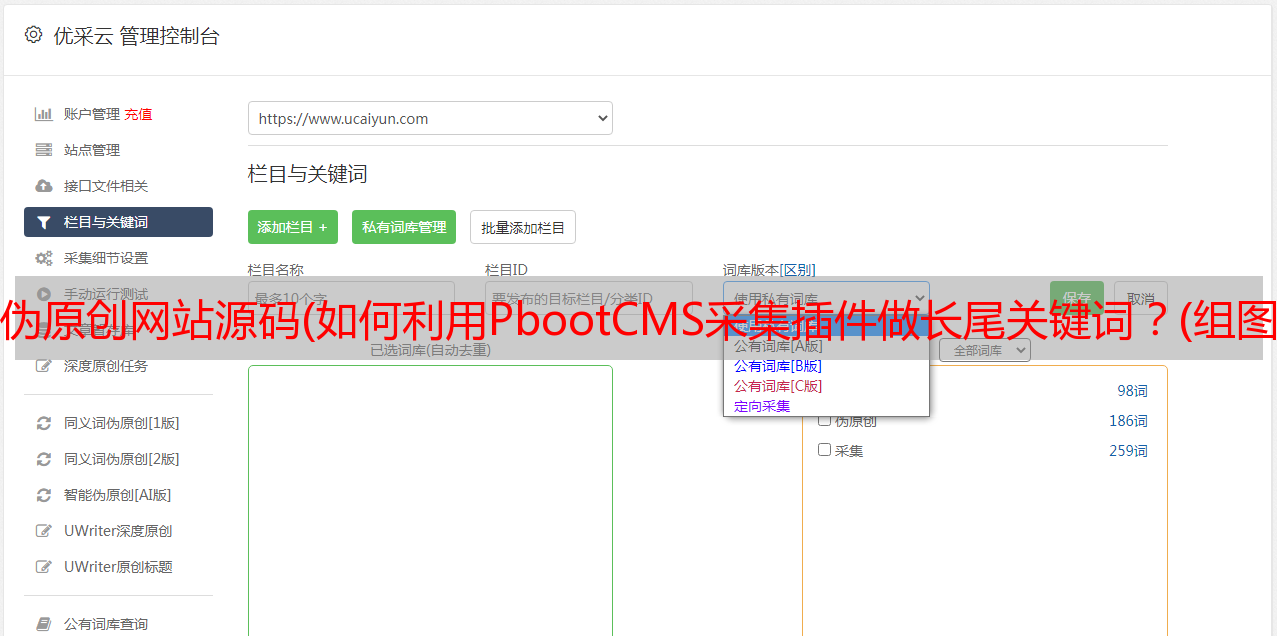 优采云 发布时间: 2022-03-22 04:07伪原创网站源码(如何利用PbootCMS采集插件做长尾关键词?(组图)