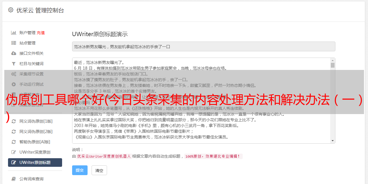 伪原创工具哪个好(今日头条采集的内容处理方法和解决办法(一) )