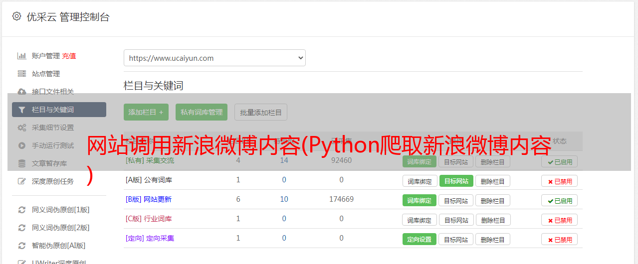 优采云 发布时间: 2022-03-22 13:05网站调用新浪微博内容(Python爬取新浪微博内容