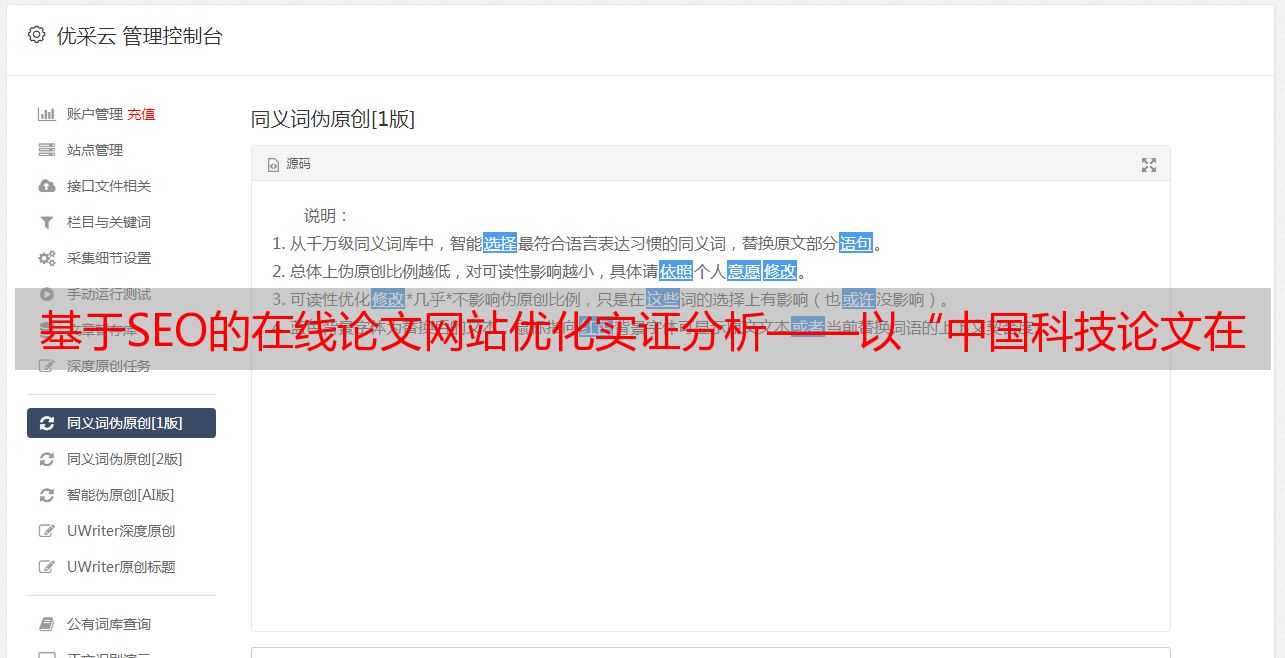 优采云 发布时间: 2021-05-11 18:02基于SEO的在线论文网站优化实证分析——以“中国科技论文在线”为例