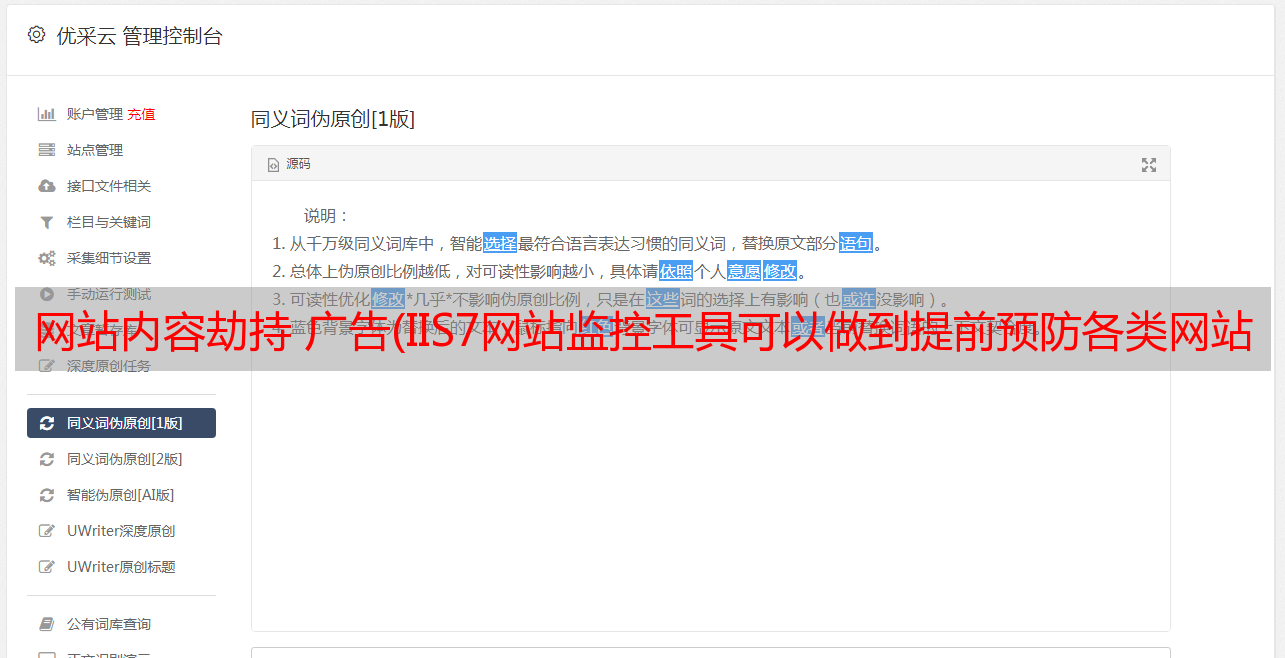 优采云 发布时间: 2022-03-22 16:20网站内容劫持 广告(IIS7网站监控工具可以做到提前预防各类网站劫持的机会)