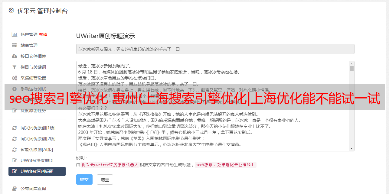 优采云 发布时间: 2022-03-23 01:11seo搜索引擎优化 惠州(上海搜索引擎优化|上海优化能不能试一试?5))