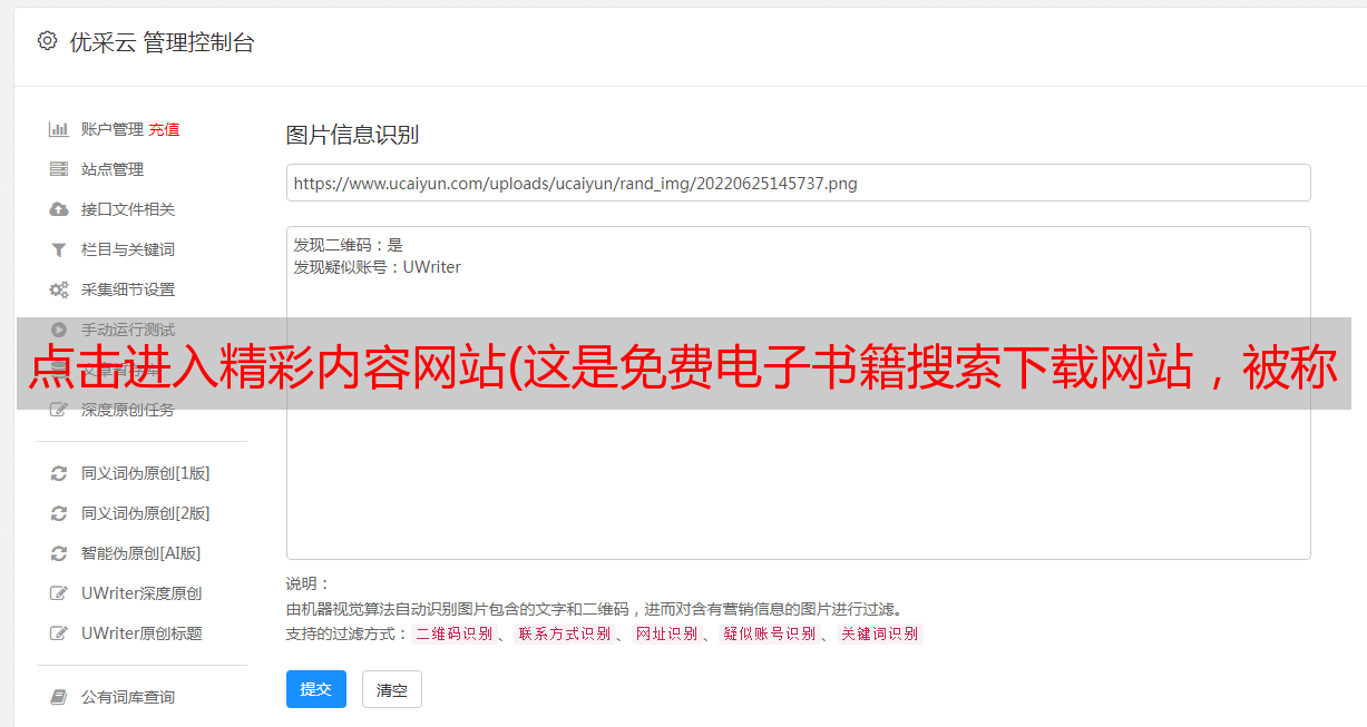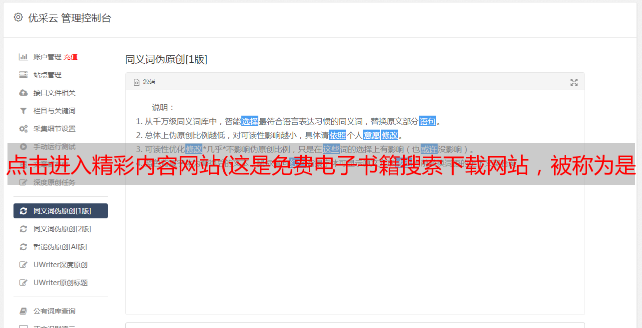 优采云 发布时间: 2022-03-23 02:04点击进入精彩内容网站(这是免费电子书籍搜索下载网站,被称为是世界上最大的免费图书馆