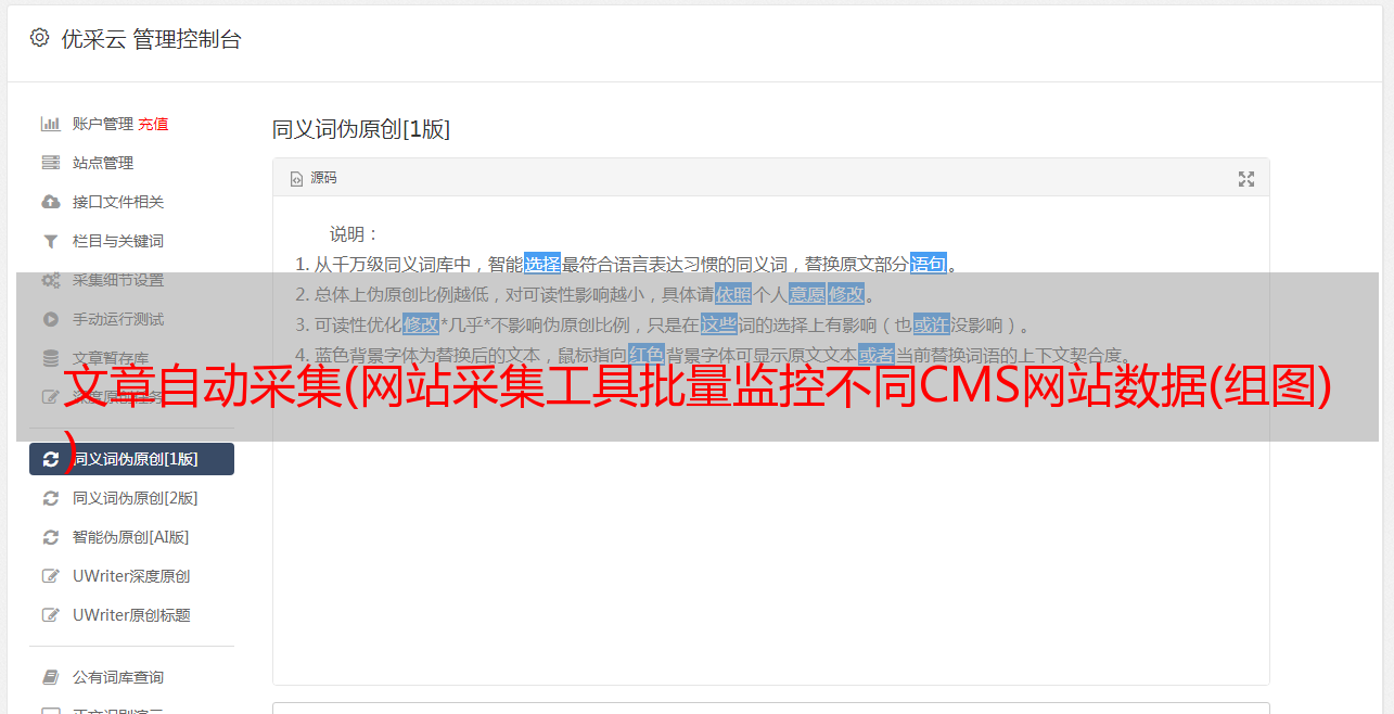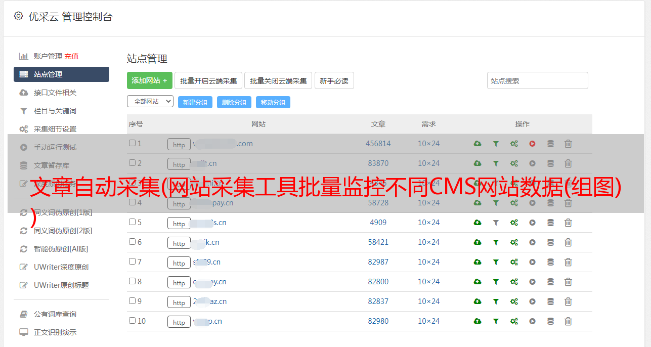 优采云 发布时间: 2022-03-23 05:09文章自动采集(网站采集工具批量监控不同CMS网站数据(组图)