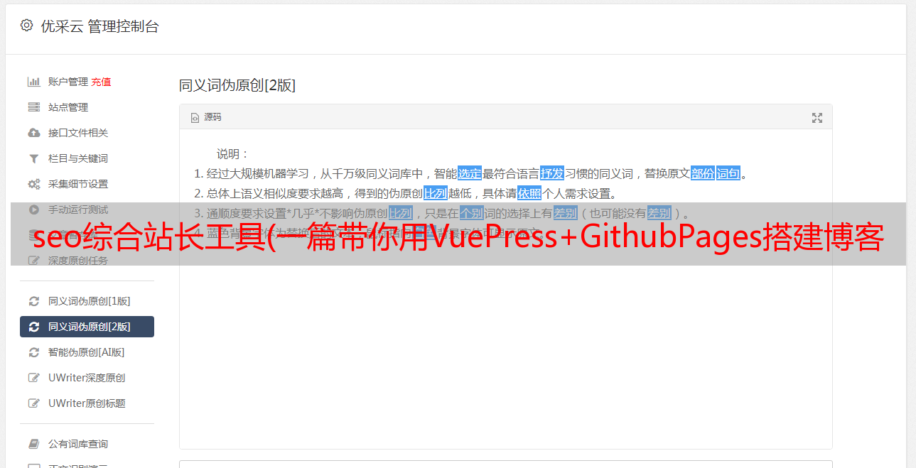 优采云 发布时间: 2022-03-23 05:16seo综合站长工具(一篇带你用VuePress+GithubPages搭建博客的SEO技巧)